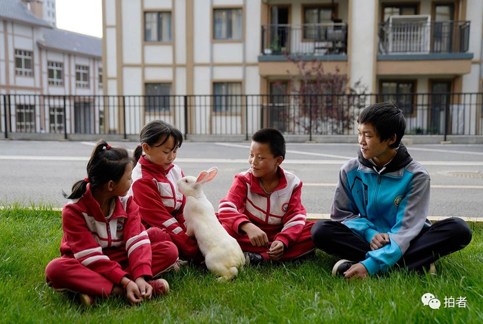 2020年6月8日,毕节市威宁县五里岗街道朝阳社区,刘章桥兄妹四人带着他们养的兔子在新家的小区里玩耍。他们就读于附近的中小学,家和学校之间单程步行约半小时。