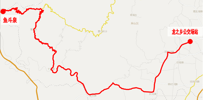 路由:由龙之乡公交场站发出,经京周路至房山南关立交桥,沿F19路原路由至鱼斗泉。