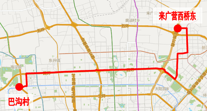 调整后首末站:来广营西桥东-巴沟村