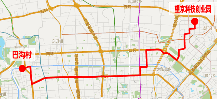 调整后首末站不变(巴沟村-望京科技创业园)