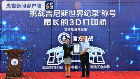 记者从河北工业大学了解到,7月21日,该校装配式混凝土3D打印赵州桥,成功挑战吉尼斯世界纪录,获“最长的3D打印桥”认证。