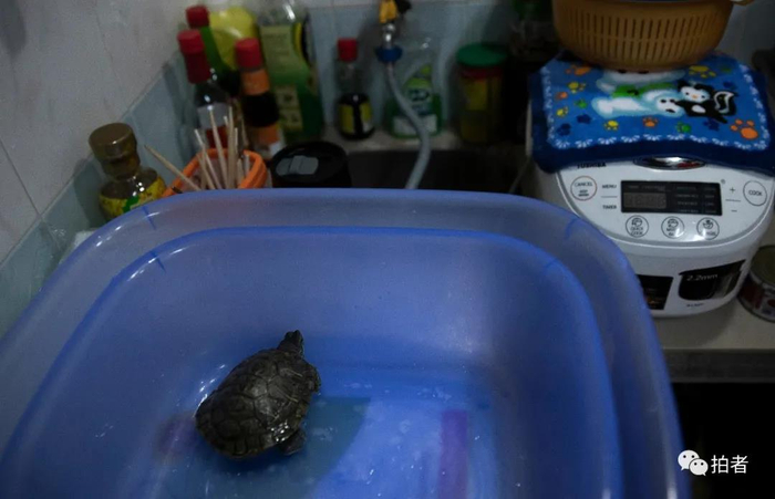 △狭小的厨房里,黄凤儿子养的小乌龟被安置在一个很大的塑料盆里,电饭煲上盖着一块用来遮灰的手帕。