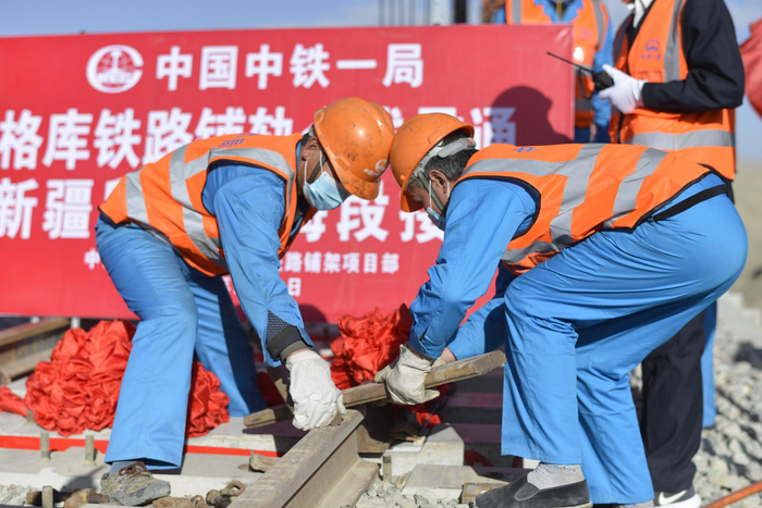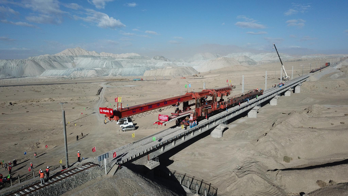 中国中铁承建的格库铁路(新疆段)铺轨贯通