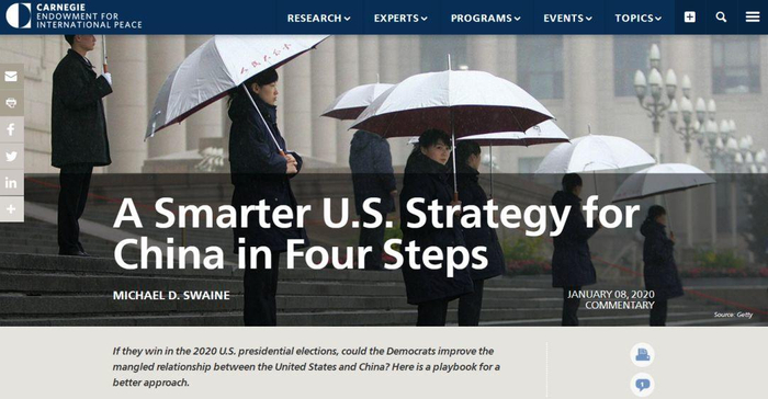 美智库卡内基国家和平基金会高级研究员史文(Micheal Swaine)撰文批评特朗普政府现行一味对华强硬政策并不明智,美政府应该把“共存、竞争、合作”作为对华战略的主基调。