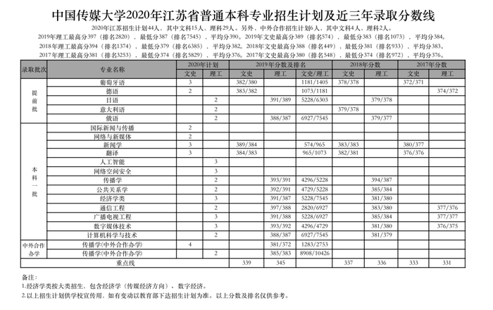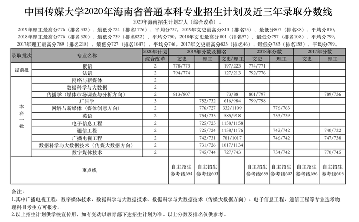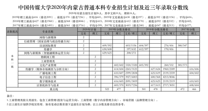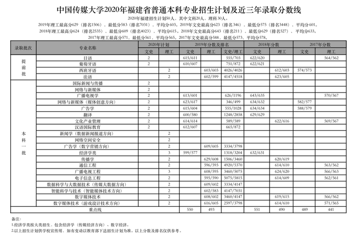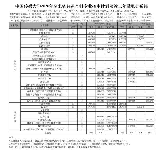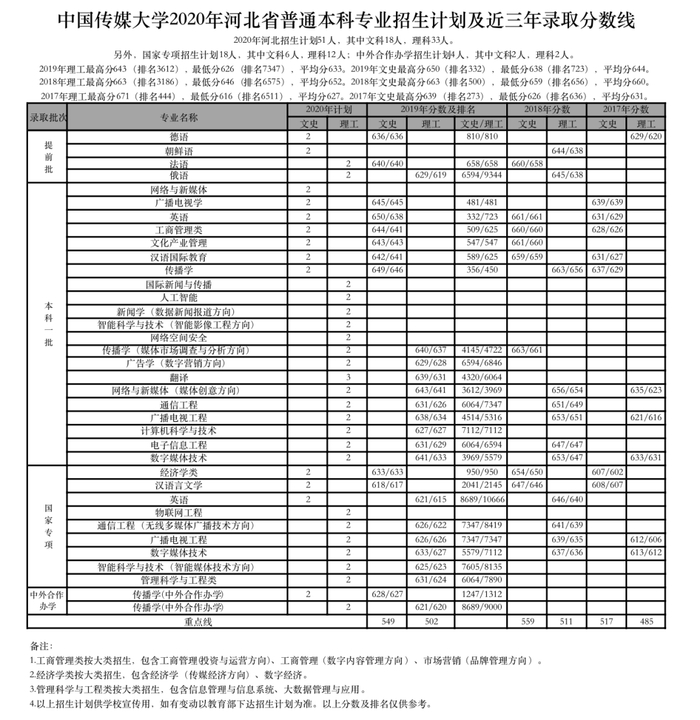 原标题:中国传媒大学2020年各省招生专业及招生计划