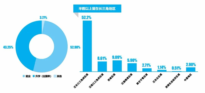 “以国防就业为主体,升学出国和世界500强为两翼,航空航天民航三航为特色,引导毕业生向政府组织、国际组织、民营企业、自主创业四个领域发展”的就业市场去向为广大毕业生提供了广阔的发展天地,实现了“高就业率、高就业层次、高事业发展能力”的就业目标。