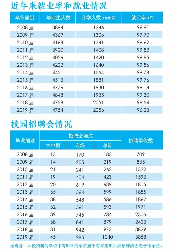 近十几年来,学校毕业生就业率始终保持在98%以上,始终在江苏省重点高校中保持前列。连续多年获得“江苏省高校毕业生就业工作先进集体”称号。2012年学校成功入选全国就业高校50强。2018年7月,学校获评全国创新创业典型经验高校50强。