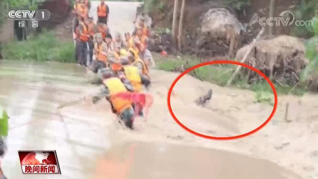 第72集团军某合成旅营长 范金鑫:我们分析可能地面发生了小的塌方,瞬间就被突然冲走,我们跳下水想实施一个救援,因为当时那个水是有一个落差的,水里面是由漩涡,我们一时很难靠近他,直到在被冲出去20米左右的距离后,我们把他控制住了。