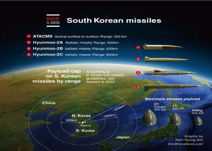 韩国还拥有“玄武-3”巡航导弹,虽然其射程据信超过1000公里,但巡航导弹弹头质量太小,末段速度太低,毁伤威力难与弹道导弹相提并论,故本文不予讨论。