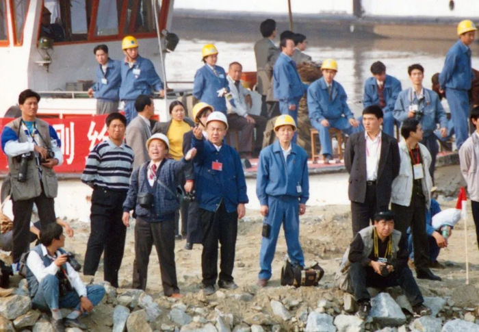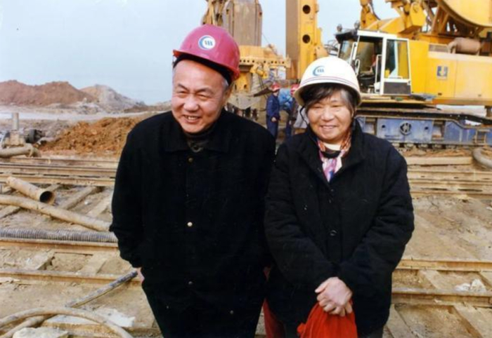 △1998年,郑守仁夫妇在二期围堰施工现场。