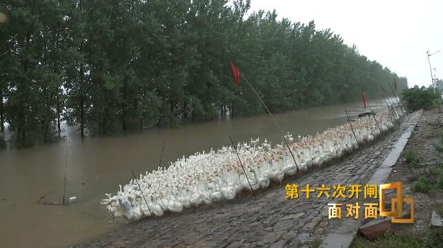 7月20日8时31分,为缓解淮河防汛压力,按照国家防总的统一部署,王家坝13孔闸门全部开启,向蒙洼蓄洪区分洪。7月21日,《面对面》栏目记者来到王家坝。