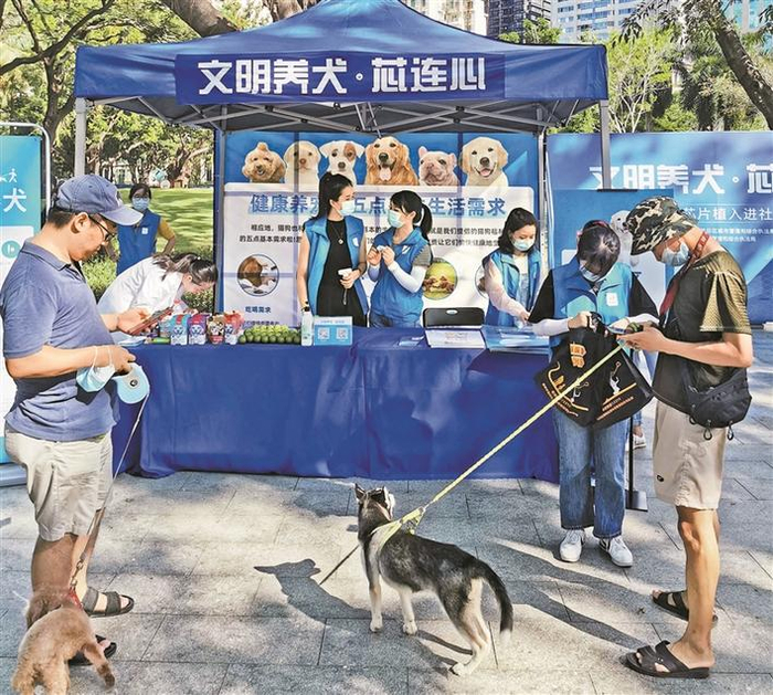 昨日,“文明养犬·芯连心”犬只芯片植入进社区活动在福田区景蜜社区公园开展。