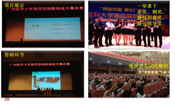 参加广医创新创业大赛项目:益硒酸奶坊、美添三健客、创新创业大赛大奖