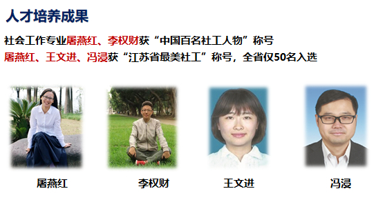 江南大学位于中国经济发达的长三角地区,受到工业化和城市化发展辐射,在社会研究与服务方面具有各种先天优势与条件,江南大学也是在全国开办社会工作专业最早的学校之一。自2001年创办社会工作专业以来,形成了教师专业背景强、教学效果良好、实践经验丰富、学生规模大、社会影响好,办学条件先进等相对优势。拥有在国内较早建成、具有一流水平的社会工作实验室,专用于社会工作专业实验教学和其他实践教学的需要,还与地方政府合作建立了稳定而规范的实习实践基地或社会工作共建基地,开展专业实习、实践教学和社会服务。