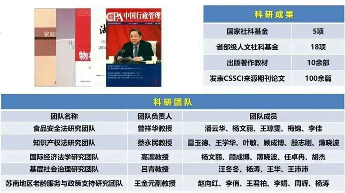 现设有民商法学、法理学与宪法行政法学、刑事法学、经济法学、国际法学与比较法学等四个教研室,拥有模拟法庭综合实验室。拥有法学一级学科硕士点,设有江苏省知识产权培训基地、无锡市行政法研究中心等多个研究机构。办学中遵循“厚德载物、止于至善、德法并蓄”的办学理念,人才培养中注重理论与实践相结合,与无锡市6家法院、6家检察院、15家律师事务所以及12家基层社区建立合作关系,设立教学实践基地和社会实践基地,将真实庭审、真实办案、真实社会管理引入课堂教学中,深受学生欢迎。