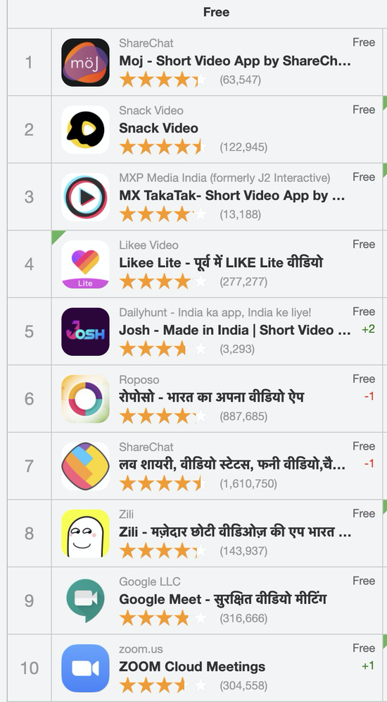 实际上,即便政府不采取任何措施,印度本土App也在以迅猛势头发展。去年印度的应用市场上,本土头部App数量,也已超越在印度布局的中国厂商“出海App”。