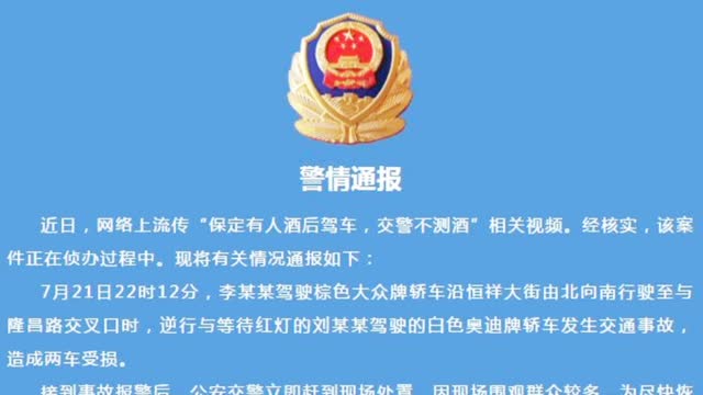 河北官员酒驾交警不敢当场测酒? 保定警方:在警队对当事人进行检测