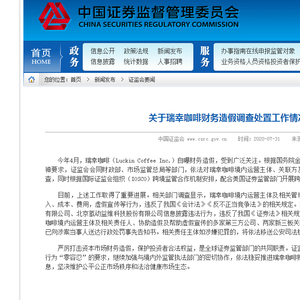 据证监会官网消息,今年4月,瑞幸咖啡(Luckin Coffee Inc。)自曝财务造假,受到广泛关注。根据国务院金融委关于对资本市场财务造假行为“零容忍”的精神要求,证监会会同财政部、市场监管总局等部门,依法对瑞幸咖啡境内运营主体、关联方及相关第三方公司涉嫌违法违规行为进行了立案调查,同时根据国际证监会组织(IOSCO)跨境监管合作机制安排,配合美国证券监管部门开展跨境协查。