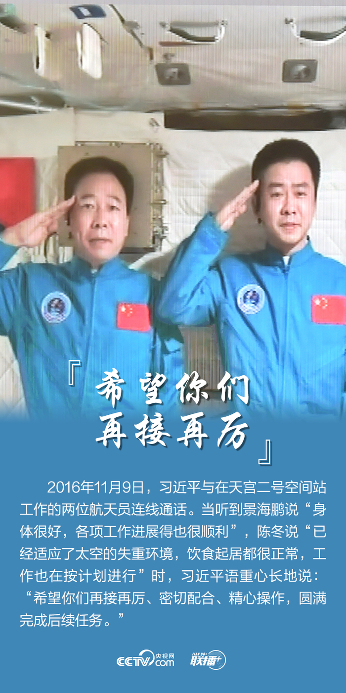 从现场观看飞船发射,到与执行任务的航天员“天地通话”,再到给老科学家回信……习近平总书记始终密切关注我国航天事业发展。在我国航天事业迎来又一个重要里程碑之际,央视网《联播+》与您一起了解总书记航天情缘中的六个高光时刻,共同感受中国航天的飞跃。