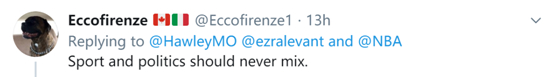 “体育和政治不应混为一谈。”