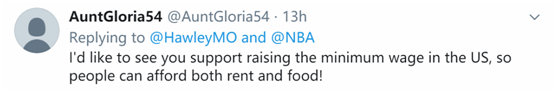 “我希望看到你支持提高美国国内最低工资水平,这样人们才能负担得起房租和食物!”