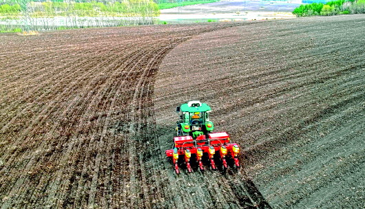 5月8日,黑龙江垦区友谊农场,一台大马力农机正在进行玉米播种。徐宏宇摄