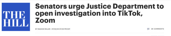 一个最近的例子是,就在前两天,在TikTok遭到打压的同时,美国共和党和民主党这两党的议员还一致要求对美国的“云视频会议”公司“Zoom”调查。这家公司虽然是由一位美籍华人在美国创立的,但这位美籍华人出生于中国大陆的背景,却似乎成了他在美国的“原罪”。