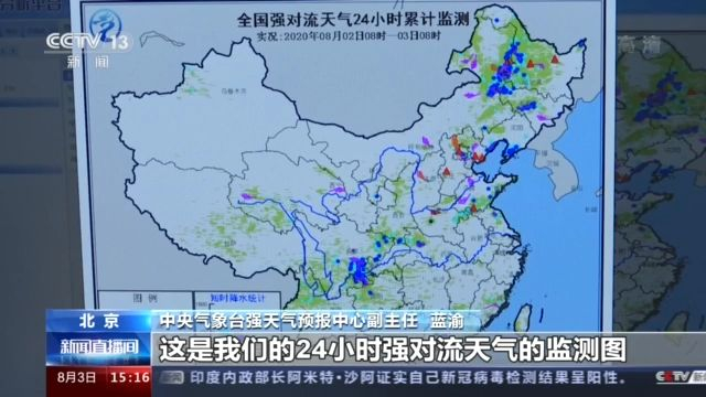 中央气象台强天气预报中心副主任 蓝渝:这是我们的24小时的强对流天气的监测图,那么截止到3日早上8点的话,在东北地区和四川盆地南部的话,是强对流多发的一个地带,那么都发生了比较密集的短时强降水还有风雹的天气。