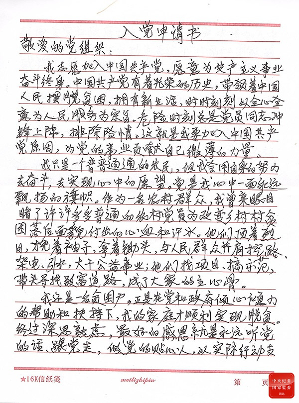 特写|脱贫户的入党申请书