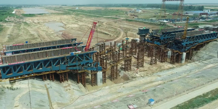 今天( 8月4日),引江济淮工程的淠河总干渠钢渡槽边跨实现了合龙,为2021年渡槽正式通水奠定了坚实的基础。