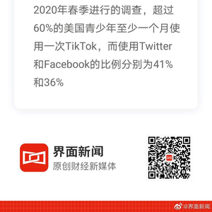 资银行Piper Sandler一年两次的调查显示,TikTok目前在美国青少年中最受欢迎的社交媒体平台中排名第三,仅次于Instagram和Snapchat。根据2020年春季进行的调查,超过60%的美国青少年至少一个月使用一次TikTok,而使用Twitter和Facebook的比例分别为41%和36%