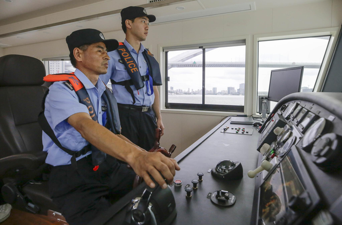 昨天14时,上海中心城区室外气温飙至35摄氏度。烈日高悬,黄浦江江面热浪滚滚。阳光照在水波上,折射的粼白光晃得人发晕。站在公安巡逻艇的甲板上,潮热的风从四面包裹而至,用身处蒸笼比喻并不为过。