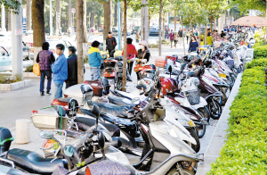 电动车应当停放在停车场(点)或指定的划线区域内。 资料图
