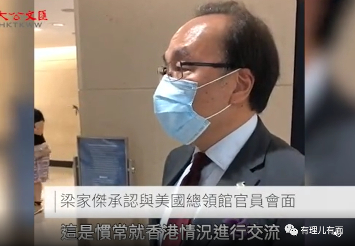 梁家杰就礼貌得多,接受了采访称,“就是惯常就香港情况进行交流”。当记者追问“交流了什么问题”后,梁家杰回答“就是大家久不久见一下面”。