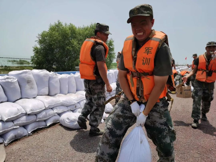 “沙袋沉重,也要咬牙抗住,因为堤坝背后是人民群众的生命安全。人民子弟兵的肩膀硬,扛得住!”