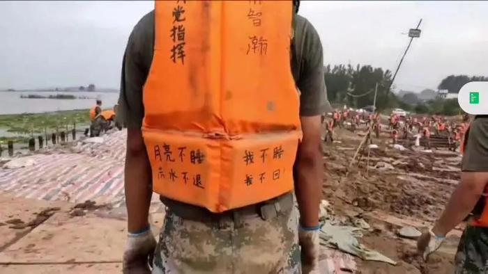“看到肆虐的洪水淹没了老百姓的家,我会想起自己的家人。”马祯成已有两年没回过家,近一星期没能打通家里的电话。家乡是否也遭遇了洪水?家人们都平安吗?想到这里,他更加卖力地搬起沙石袋,他相信,定也有许多人在日夜不息地守护他的家乡。