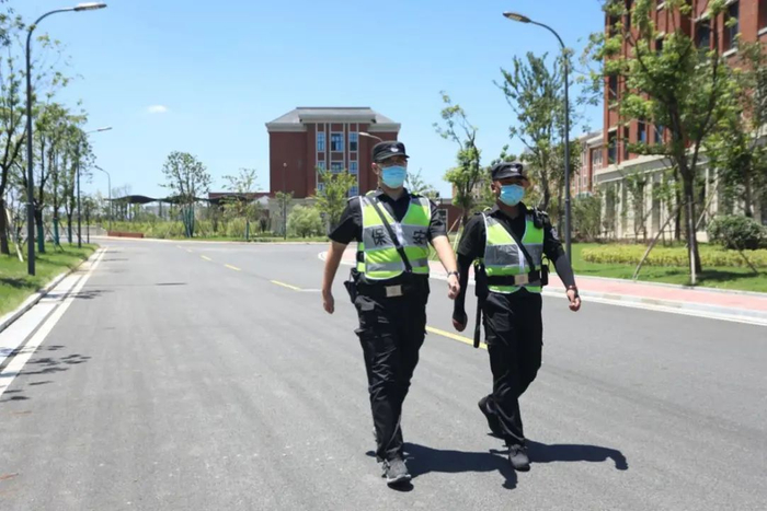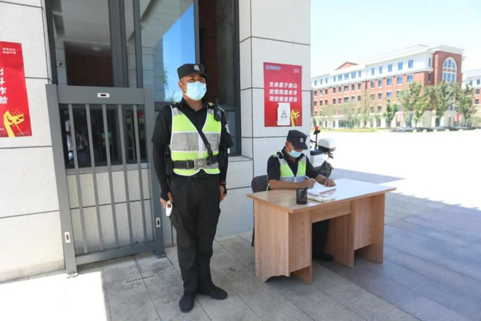 疫情暴发后,校园实行封闭管理,复工后严格按学校防控要求执行"受控进校"。保安人员24小时全天候值班、巡逻。