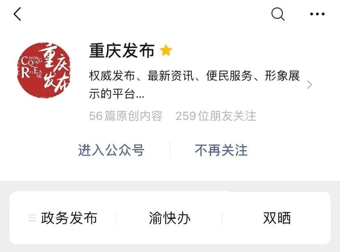 进入重庆发布微信公众号
