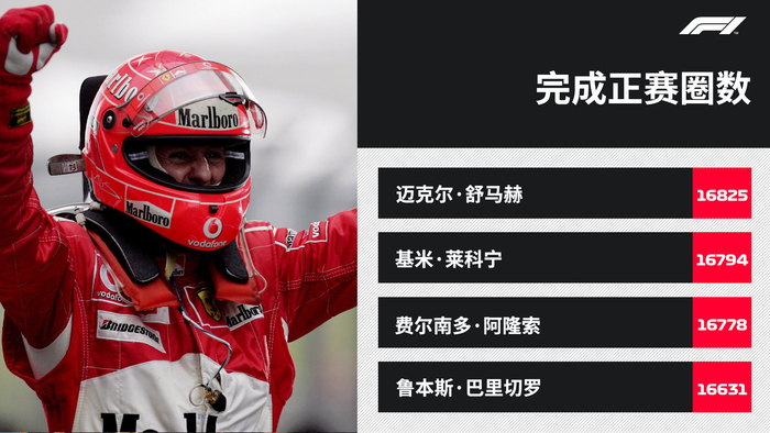 F1史上完成正赛圈数最多的前4名车手。