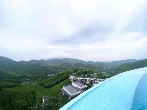 盘山而上,山顶的云顶水吧自带无边泳池,山林美景尽收眼底。