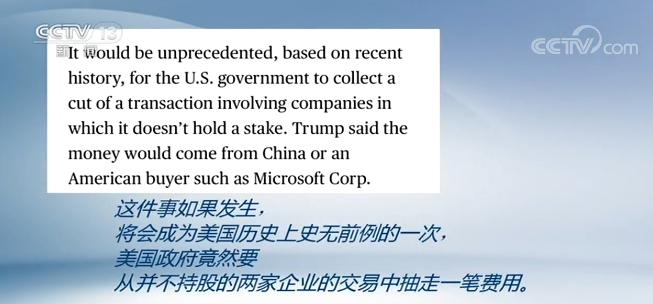彭博新闻社在报道中指出,这件事如果发生,将会成为美国历史上史无前例的一次,美国政府竟然要从并不持股的两家企业的交易中抽走一笔费用。