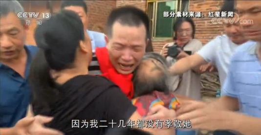 张玉环:想的就是看到母亲,很长的时间都没有孝敬她,她肯定很想我,抱着我母亲,她就泪流满面。宋小女晕倒了,就是很激动,不知道是什么原因。我跟我儿子说了,明天我不能跟她拥抱了,内心是想拥抱,但是我考虑到她接受不了。