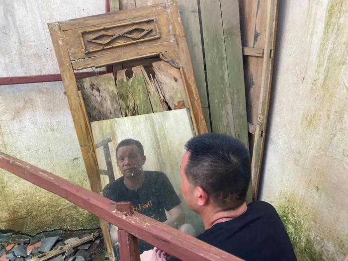 张玉环:这里是我睡觉的房间,现在都烂掉了,一无所有了。这个地方就是案发现场。