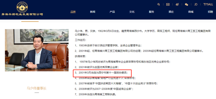 据《经济参考报》记者查询工商登记资料发现,马登科曾任青海省政协委员。在青海兴诺杞业发展有限公司官网上,马少伟的简介中显示,他曾于2001年3月当选为西宁市第十一届政协委员。