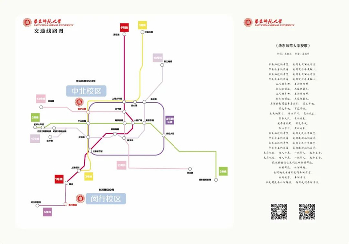 “智慧的创获,品性的陶熔,民族和社会的发展”是华东师范大学首任校长、教育家孟宪承先生提出的大学的理想。他认为,“大学的理想实在就含孕着关于人类和文化的最高理想”。下方图案汇集了校园标志性建筑楼群,优雅校园正期待着新生们进驻。