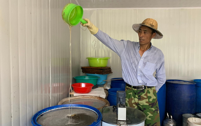 王全生说自然成熟的蜜浓度更高。新京报记者 耿子叶 摄