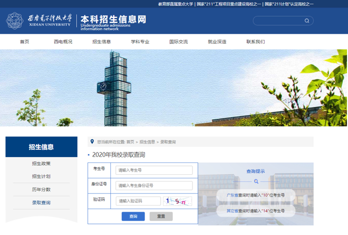 登录西安电子科技大学本科招生信息网