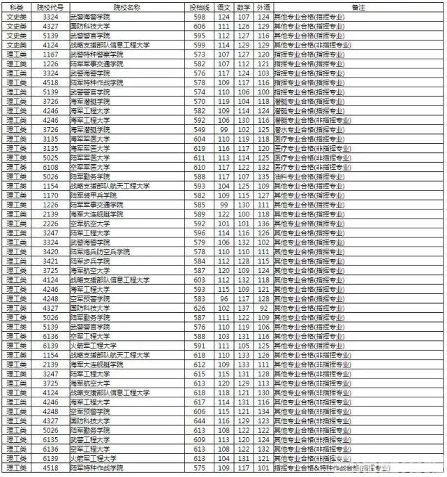 8月9日凌晨,省教育考试院公布了湖南省2020年普通高校招生军事院校本科计划(男)平行一志愿投档分数线和湖南省2020年普通高校招生军事院校本科计划(女)平行一志愿投档分数线。男生投档线文史类和理工类均为国防科技大学最高,分别达606分和644分。女生投档线同样是国防科技大学最高,文史类达644分、理工类达到661分。