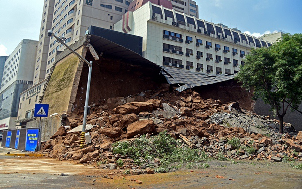 8月8日,西安明秦王府城墙部分墙体发生约20米坍塌。图为坍塌现场。(图片来源:人民视觉)