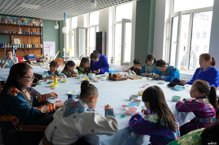 在鄂温克旗民族文化产业创业园区里,乌仁还建立了“太阳姑娘”非遗体验馆,从“非遗+旅游”衍生出“非遗+研学”模式,探索出文化传播与旅游产品融合发展的新途径,仅2019年她就接待研学团队70个,共计1500人,在让小朋友们体验到鄂温克族独特非遗文化的同时,也让这些古老的民族非遗手工技艺推陈出新。
